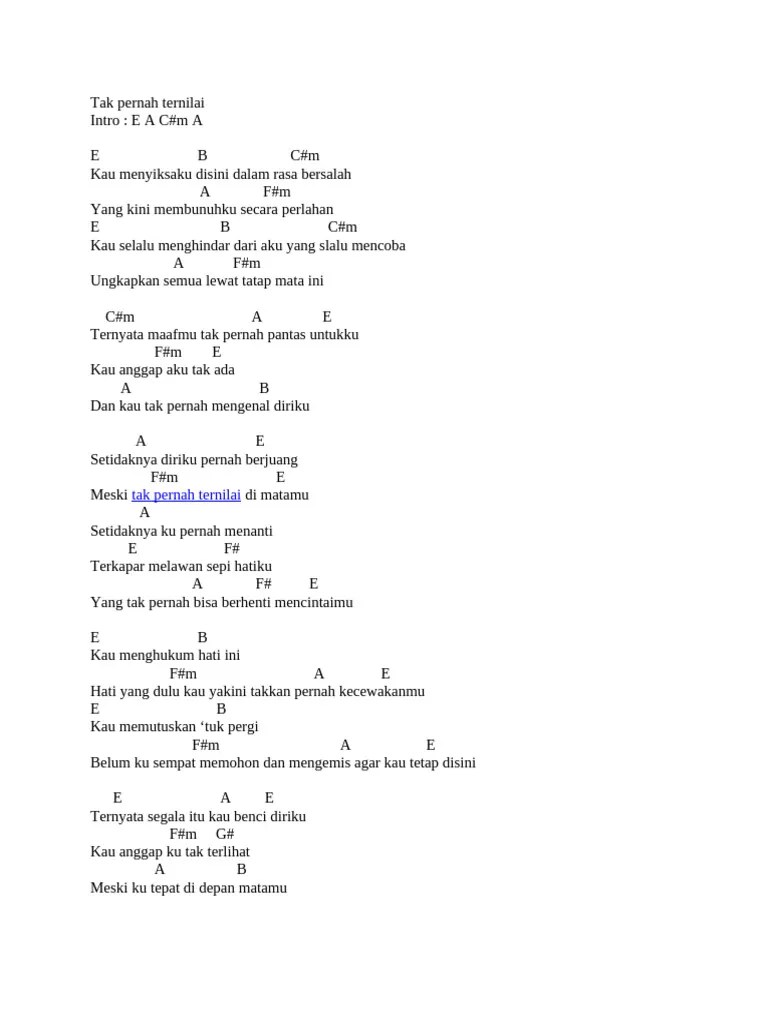 Child tak pernah ternilai pemula chord gitar last child pedih tak . Chord dasar last child tak pernah ternilai kord dasar lagu last child. Versi tanpa capo intro g d am c d. Tak pernah ternilai merupakan salah satu lagu sukses dari last child yang dirilis pada tahun 2013 dan sukses di industri musik tanah air. E b f#m a b e b f#m